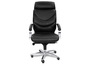 Кресло для руководителя LEEDS CHROME A кожа+кож.зам. №38308 - высота спинки: 74 см, высота от пола до сиденья: 50-57 см, диаметр крестовины: 72 см, ширина спинки: 53 см, объем: 0,37 м3, вес: 25 кг, механизм качания без фиксации, регулировка жесткости качания по весу сидящего, ограничения по весу: 150 кг, основание: металл, каркас: немонолитный, подголовник, подлокотники, поясничный упор, регулировка по высоте, резиновые колеса для паркета, в наличии в Иваново.