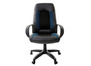 Кресло для руководителя Strike EX-525 экокожа черное/синее, ткань серая TW №44694 - высота спинки: 71 см, ширина спинки: 54 см, механизм качания без фиксации, регулировка жесткости качания по весу сидящего, ограничения по весу: 120 кг, основание: пластик, каркас: немонолитный, производитель: россия и снг, подлокотники, регулировка по высоте, в наличии в Иваново.