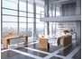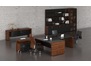 Мебель в кабинете руководителя должна быть выдержана в деловом стиле, но обладать при этом оригинальностью и подчеркивать его вкус. Стандартизированные комплекты, которые приобретаются для персонала, тут не подойдут. Нужно что-то необычное, современное и функциональное. Отличным вариантом станет данный комплект, имеющий нестандартную конструкцию, но в то же время строгие и правильные линии. Отсутствие привычных перегородок, проемы и углубления, делающие мебель визуально тонкой и почти прозрачной, выгодно отличают его от классической и уже приевшейся офисной мебели.